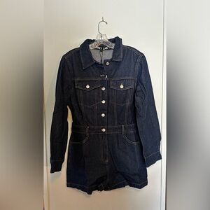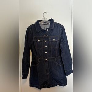 Grey Lab Dark Wash Denim Romper Mini Jumpsuit Size Medium
