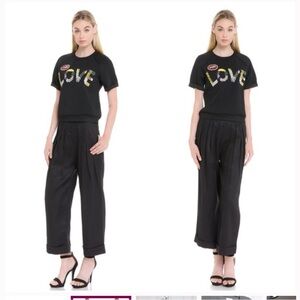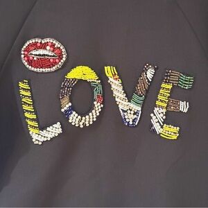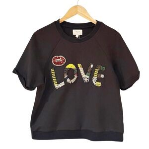 Grey Lab LOVE Beaded Short Sleeve Black Sweatshirt L