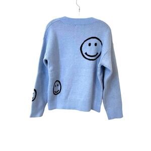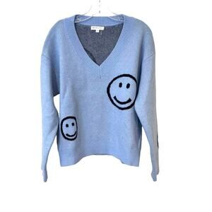 Grey Lab Los Angeles V-Neck Smiley Face Sweater Sz M