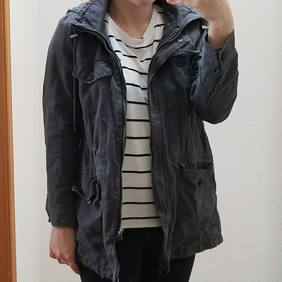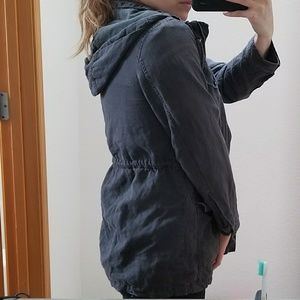 Super cute and comfy, tons of pockets. Hood is adjustable and removable. Great condition. Small petite.