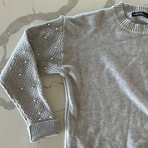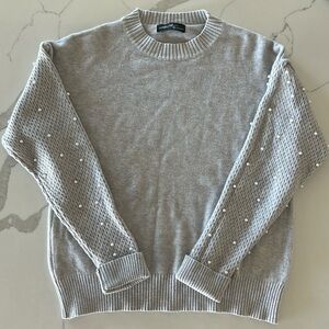 Grey Long Sleeve Pearl Sweater Size Medium