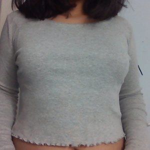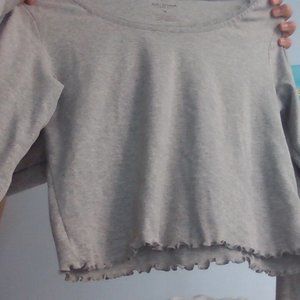 Grey Long Sleeved Top With Ruffles/Laces.
