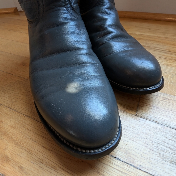 Sure black is cool, but when you want to mix it up? Grey boots are the answer. These are excellent condition vintage roper style boots made by Justin. As reputable a boot maker as there's ever been. Perfectly broken in. Tons of life inside and out. Size 10.5. True to size. Excellent for Winter!