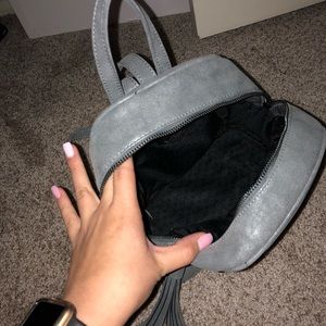 Grey mini backpack from Charming Charlie. Brand new! Adjustable straps and tassel charm.