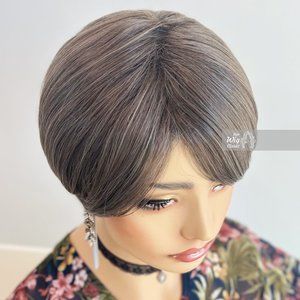 Handmade synthetic Fashion Mocha Grey Color Straight Bob wig made of high-grade heat-resistant synthetic fibers which can be treated with low-temperature heat, the wig was made of trendy mocha grey color fiber to mimic the most natural look. The wig cap comes with a hair top patch, low maintenance and easy to style. The rest of the cap is made with an open weft. This means it's breathable and comfortable for you to wear all day. The wig cap circumference is about 20-22 inches. It's also designed with adjustable straps in the back if in need to make any cap adjustments. The density for this wig is at 150%, which I find is the sweet spot where it gives you full coverage with the additional weight.