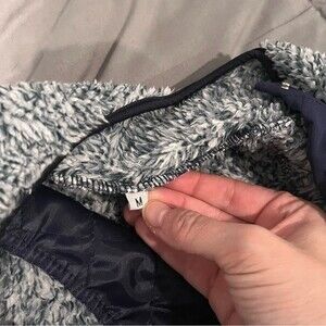This Grey & Navy Blue Color Block Stand Collar Snaps Long Sleeve Fuzzy Pullover is in excellent condition.