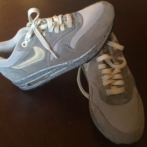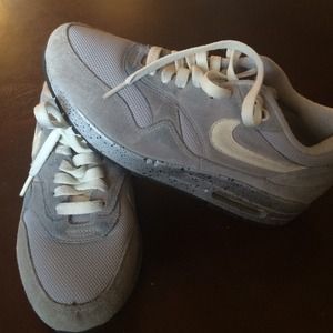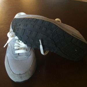 These are a pair of grey nike shoes. They were worn casually and the suede does have a little but of navy marks from denim.