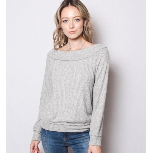 Sexy grey off the shoulder long sleeve top. Dress up or down for any occasion!