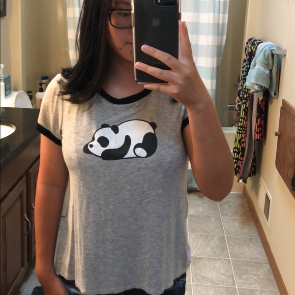 Grey Ringer tee with panda on front. Shirt from Tillys. Girls XL but is VERY stretchy. Shirt length is a little shorter but not cropped. Shirt has a been worn a fair amount of times. Bundle with other shirts from my closet for a discount! Comment any questions or concerns. Make offers I am flexible :)