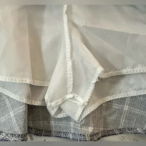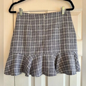 Super Adorable Grey and white plaid mini skirt with a ruffled bottom.