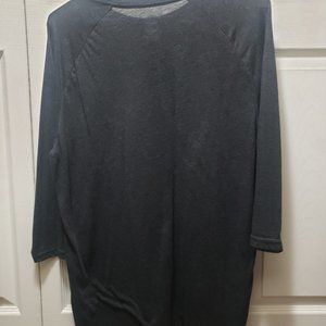 Lightweight dark grey shirt. 3/4 length raglan sleeves.
