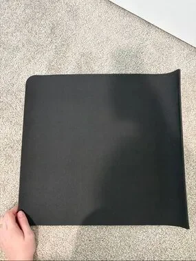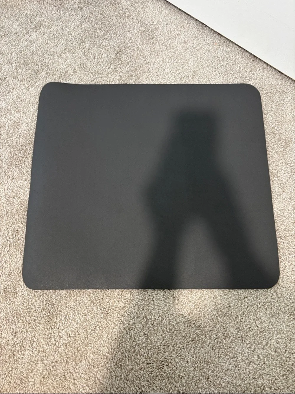 Sleek black rectangular desk mat. Smooth surface for mouse and workspace. Simple, minimal design. Easy to clean and versatile. 16x18. Never used