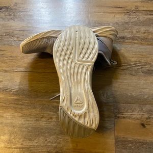 Grey Reebok sneakers. Only wore them a few times. Small stain on right shoe.