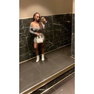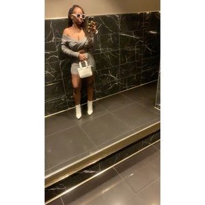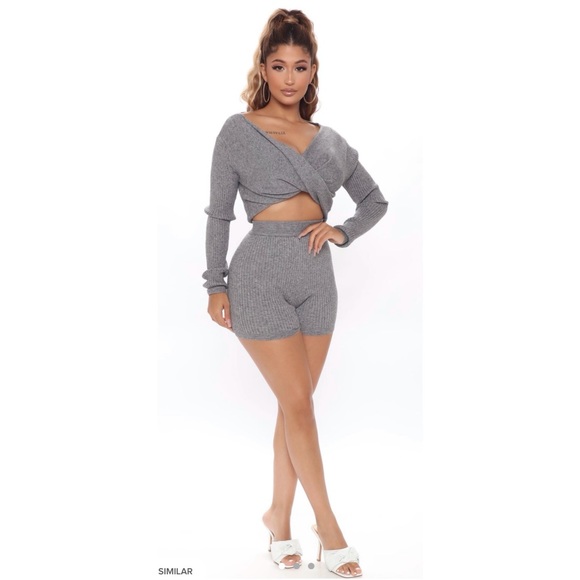 Grey Ribbed 2 Piece Short Set, Worn Once, Excellent Condition, Size XS , super stretchy size 4-6 can fit