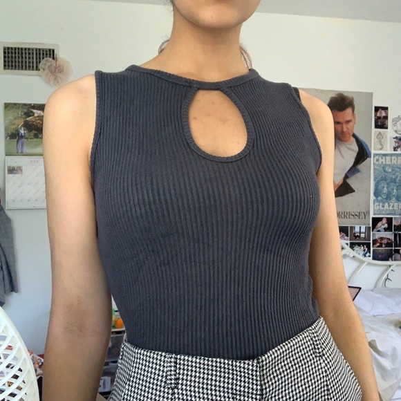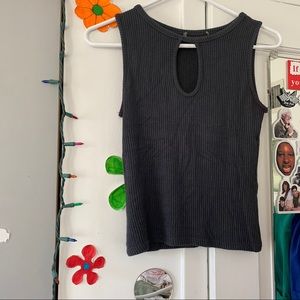 grey ribbed keyhole tank top muscle crop top. this shirt is so comfy & extremely stretchy, perfect for the summer time :D it has a cute oval cutout on the chest