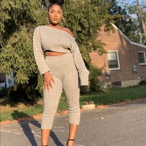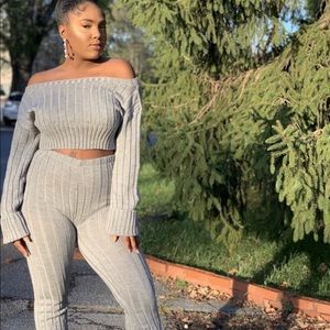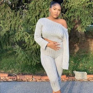 Grey Ribbed Lounge Set