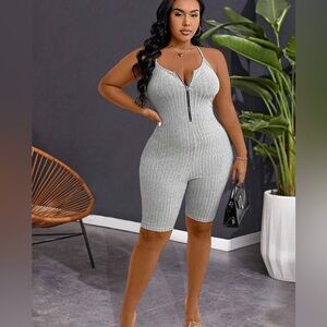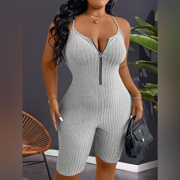 Plus Grey Ribbed Stretchy Romper is sexy & comfortable! Fabric 95% Polyester & 5% Spandex