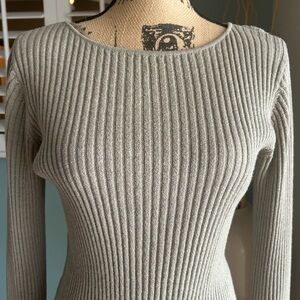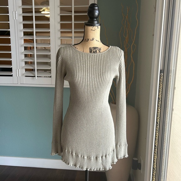 Grey, size M, ribbed texture styled pull over tunic with flair wrist and flair hem