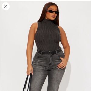 Stylish grey ribbed turleneck sleeveless top. Perfect for casual wear. Fashion nova 3X. Runs small and fits short closer to a 2x in my opinion. Thin material worn once.