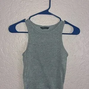 This grey ribbed tank top offers a sleek and comfortable fit, perfect for any casual outing.