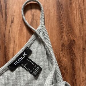 Grey ribbed tank-top. Cropped, flowy, and has spaghetti straps. Worn twice. Smoke free home.