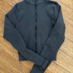 Grey fitted zip-up jacket – PLT Sport Charcoal Acid Wash Seamless Ribbed Zip Up Cropped Sports Jacket Stretchy, flattering fit