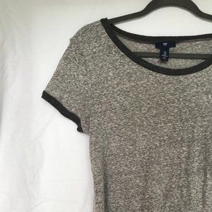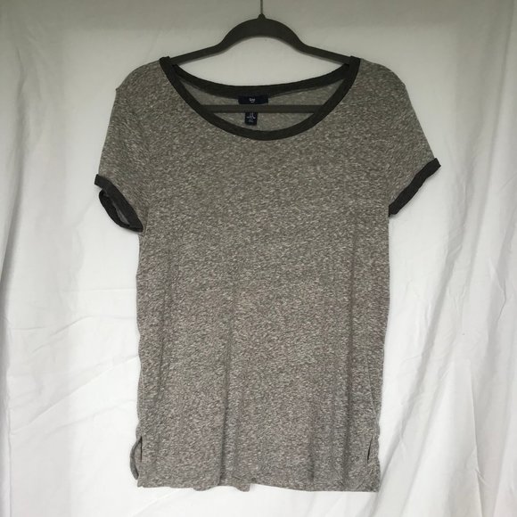 Basic heather grey ringer tee with dark grey hems and small side slits