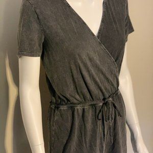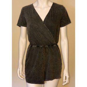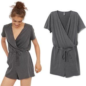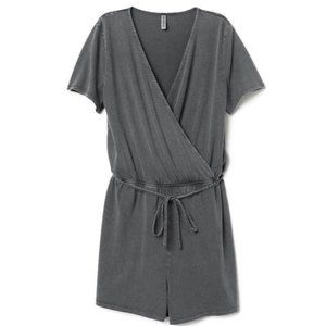 βͺοΈ Acid wash grey romper in soft viscose jersey with wrapover front section