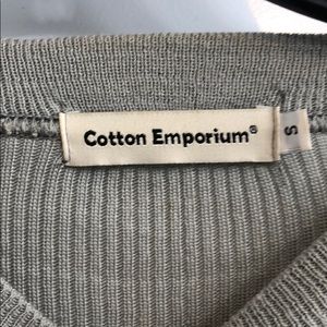 Size S. Ruffle sleeve detail. The length is on the shorter side but not quite cropped. Works best with high-waisted pants. Light weight enough to wear in the spring.