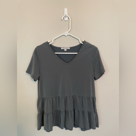 Ruffled grey short sleeve top