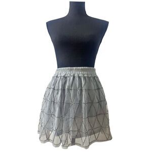 Grey Silver Beaded Mesh Alt Western Fairy Punk Boho Indie Sleaze Mini Skirt S-L