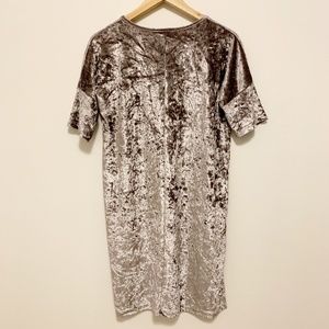 Grey velvet mini dress in great condition. Great party dress for the holidays! Size small. Brand is unknown. No stains, no flaws. I’d love to accept your offer!
