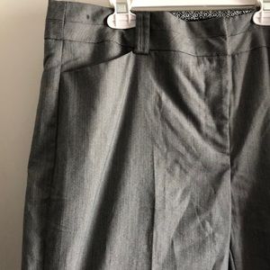 Boot cut, grey slacks.