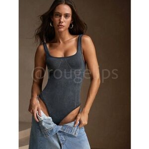 Grey Slim Fit Bodysuit Decorative Stitches