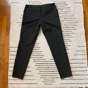 Dark grey slacks. Fabric has stretch as does waist. Mid rise, slim skinny fit. Simply Vera Vera Wang size medium.