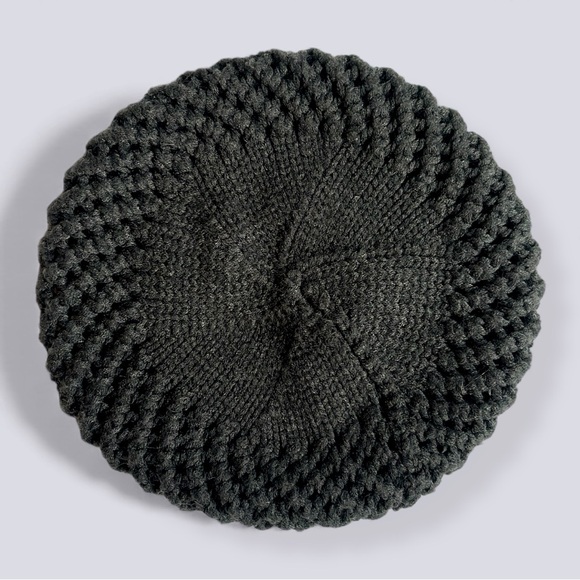 Cozy charcoal grey slouchy beret in a chunky-knit texture. Soft, warm, and perfect for winter outfits, travel, streetwear styling, or a relaxed minimalist look. Excellent condition with no flaws. One size fits most.