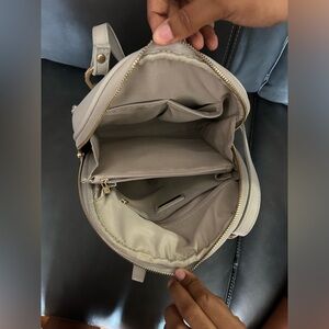 This bag can be used as a shoulder bag or backpack. Small but spacious. In good condition.