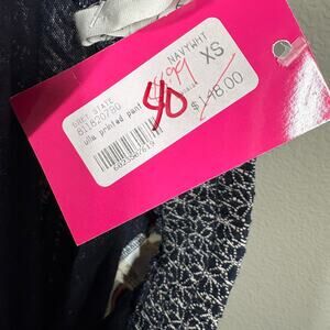 Grey State Womens XS Ulla Printed Pants Tile Print Navy Cotton Linen Elastic