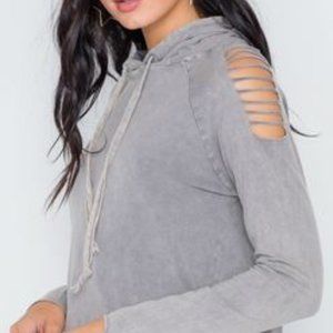 Grey Stonewash Laser Cut Shoulders Sweatshirt