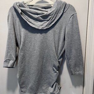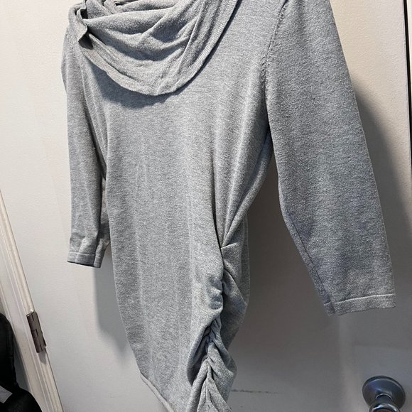 I loved wearing this to work when I worked in an office setting. The left side is synched. Also cute with just jeans for dinner.