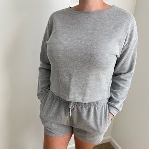 Grey long sleeve and short set. Fits like a medium.
