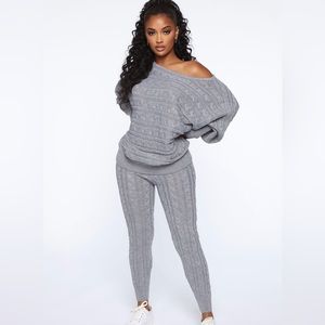 Cable knit legging set with off the shoulder with dolman sleeves. Runs a little big.