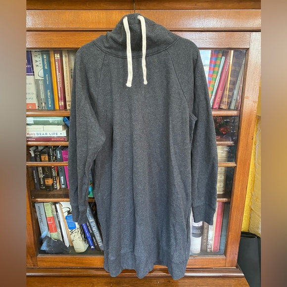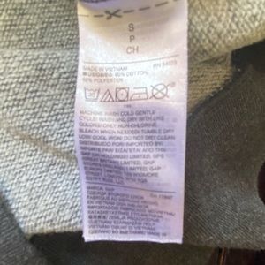 Size small, cotton blend sweatshirt. This is well worn and has a looser fit, and is long. The perfect layering piece for colder weather.