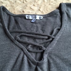 Grey Short Sleeved T-shirt with crisscrossing on the Top Front