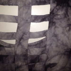 Grey and black tie die crop top with cut outs on back, brand new, never worn