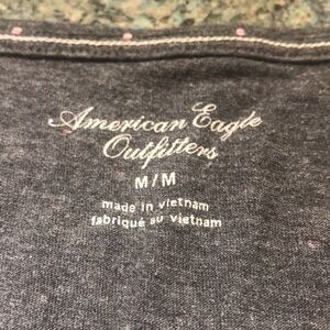 Grey V neck short sleeve American Eagle size Medium. Pink polka dots. Bon Jour