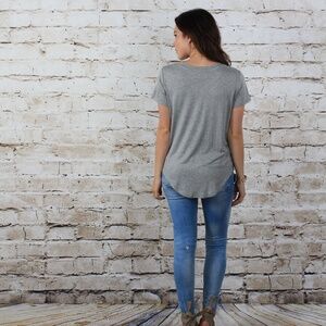 Grey V-Neck Short Sleeved Tee with American Flag Design