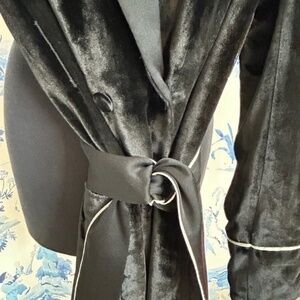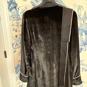 A new Grey DK x JW black velvet and white piping ladies smoking jacket. Elegant and luxurious. Soft velvet. Never worn, pockets still unclipped.