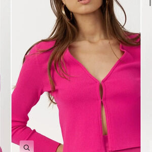 Excellent condition fuchsia the Gemma ribbed knit cardigan! Single eye hook closure in front.