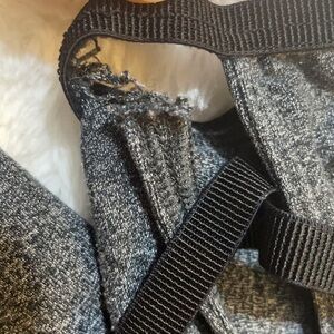 The one cross ankle strap has detached but still able to wear pants and look normal (pictured)